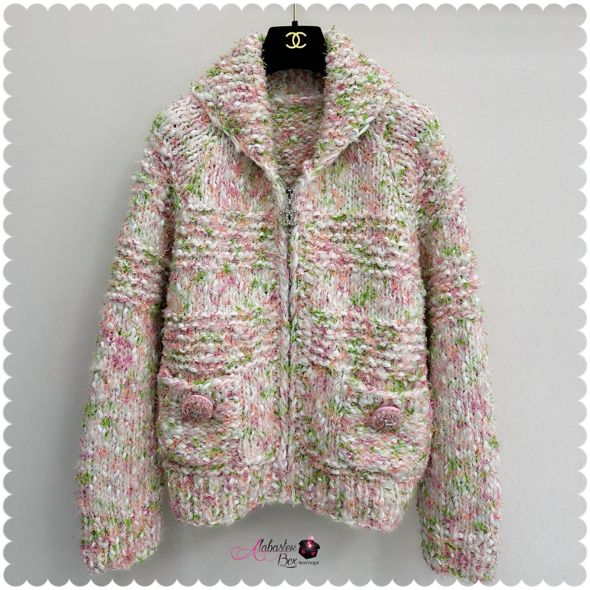 High Quality Mirrored 1:1 Luxury CC Pink & Green Knit Oversized Cardigan